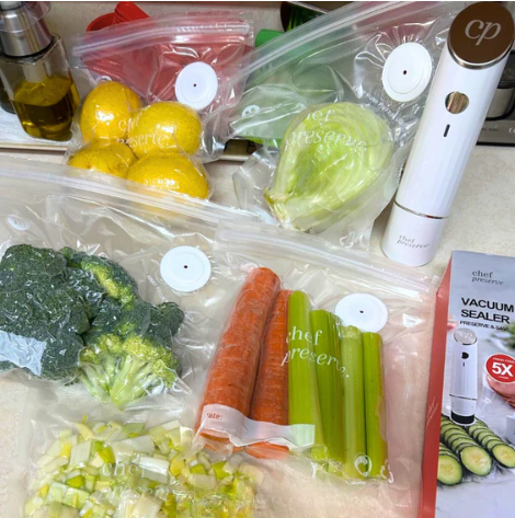 Grâce à sa technologie de valve brevetée, Chef Preserve assure une mise sous vide parfaite et garantit une fraîcheur optimale de vos aliments jusqu’à 3 ans, tout en préservant leur goût, leur texture et leurs qualités nutritionnelles.